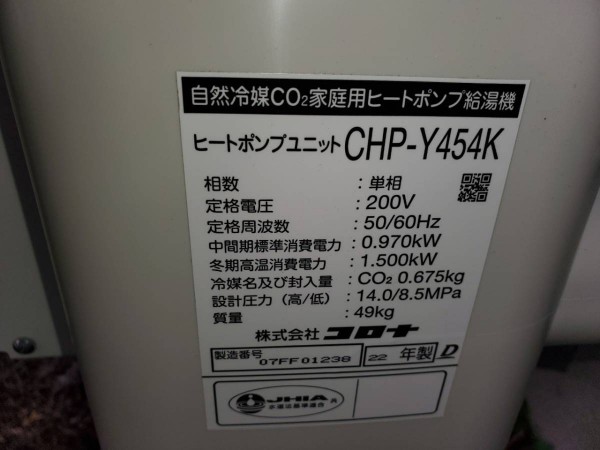 坂出市新浜町 コロナ自然冷媒CO2家庭用ヒートポンプ給湯機 貯湯ユニットCTU-37AY5K,ヒートポンプユニットCHO-Y454K エコキュート交換工事