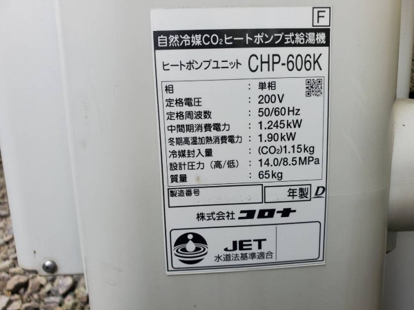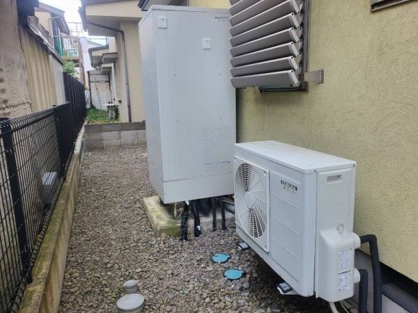 琴平町五條 コロナ自然冷媒CO2ヒートポンプ式給湯機 ヒートポンプユニットCHP-606K→ダイキン自然冷媒CO2・家庭用ヒートポンプ給湯機 ヒートポンプユニットRQW45WHV エコキュート交換工事