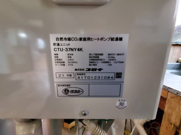 トップページ > 工事事例一覧 > 高松市茜町 コロナ自然冷媒CO2家庭用ヒートポンプ給湯機 貯湯ユニットCTU-E37AY4K、ヒートポンプユニットCHP-Y453K エコキュート交換工事