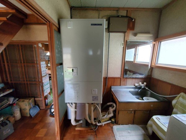 高松市茜町 コロナ自然冷媒CO2家庭用ヒートポンプ給湯機 貯湯ユニットCTU-E37AY4K、ヒートポンプユニットCHP-Y453K エコキュート交換工事