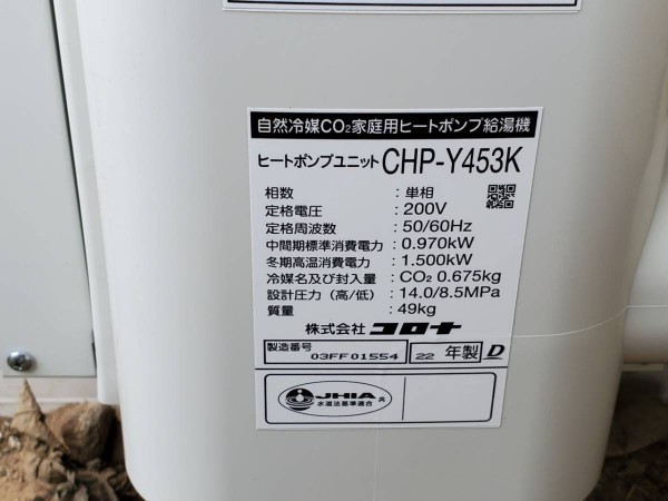 高松市茜町 コロナ自然冷媒CO2家庭用ヒートポンプ給湯機 貯湯ユニットCTU-E37AY4K、ヒートポンプユニットCHP-Y453K エコキュート交換工事|香川県のエコキュート専門交換工事店|香川エコキュート交換ショップ補助金対応可能