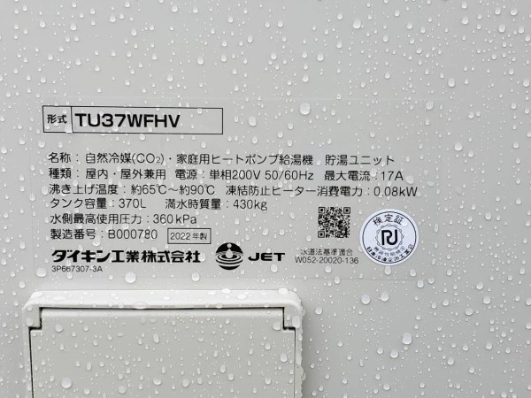 坂出市瀬居町 ダイキン自然冷媒(CO2)・家庭用ヒートポンプ給湯機 貯湯ユニットTU37WFHV エコキュート交換工事|香川県のエコキュート専門交換工事店|香川エコキュート交換ショップ補助金対応可能