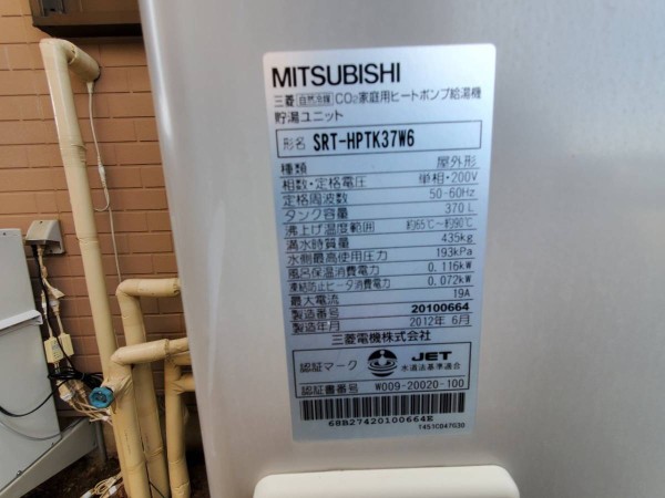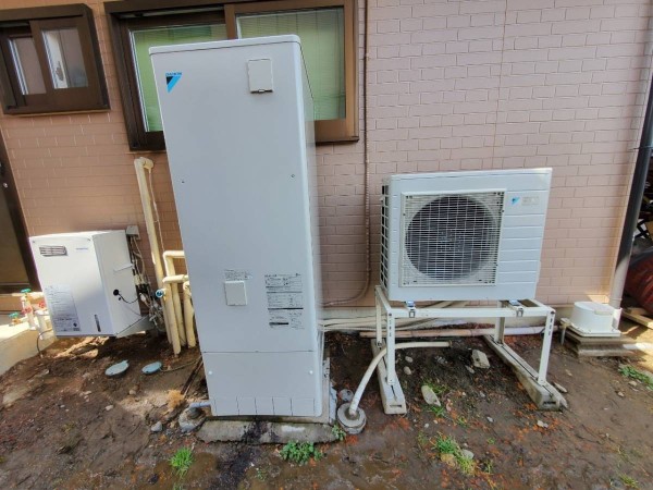 高松市茜町 三菱電機エコキュート→ダイキン自然冷媒(CO2)・家庭用ヒートポンプ給湯機 貯湯ユニット、ヒートポンプユニットRQW45WHVエコキュート交換工事