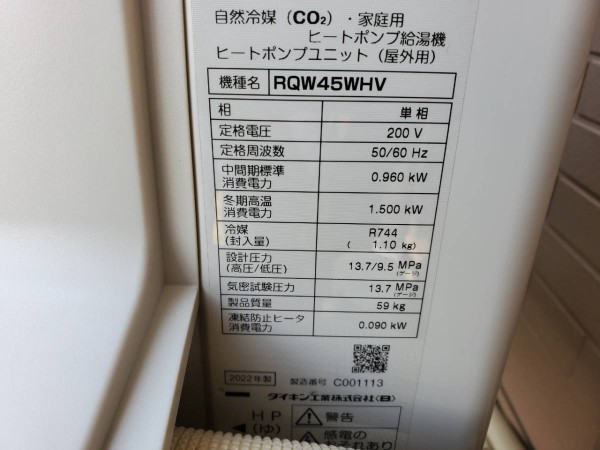 高松市茜町 ダイキン自然冷媒(CO2)・家庭用ヒートポンプ給湯機 貯湯ユニット、ヒートポンプユニットRQW45WHVエコキュート交換工事