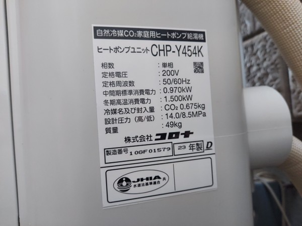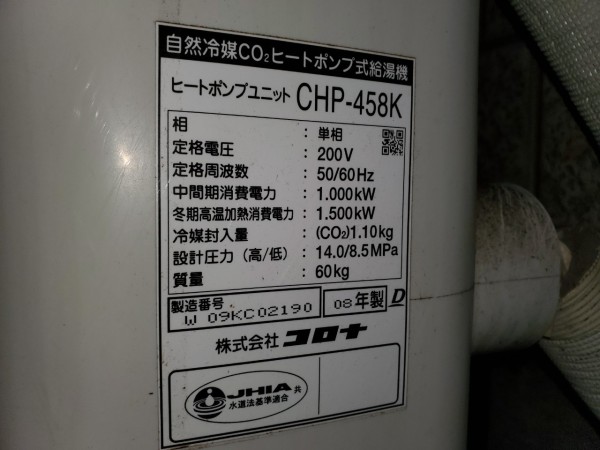 坂出市小山町 コロナエコキュートCHP-458K→コロナ自然冷媒CO2家庭用ヒートポンプ給湯機貯湯ユニットCTU-37AY5K、ヒートポンプユニットCHP-Y454K エコキュート交換工事