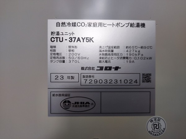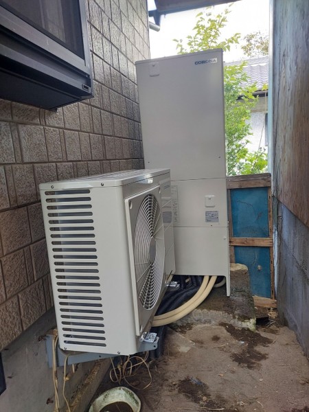 坂出市小山町 コロナ自然冷媒CO2家庭用ヒートポンプ給湯機貯湯ユニットCTU-37AY5K、ヒートポンプユニットCHP-Y454K エコキュート交換工事
