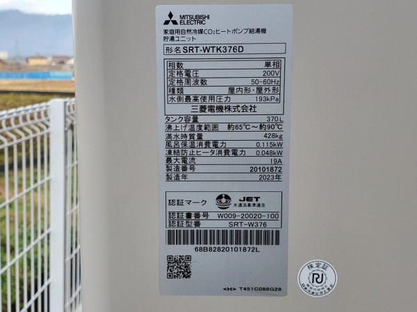坂出市小山町 三菱電機家庭用自然冷媒CO2ヒートポンプ給湯機貯湯ユニットSRT-WTK376D エコキュート交換工事|香川県のエコキュート専門交換工事店|香川エコキュート交換ショップ補助金対応可能