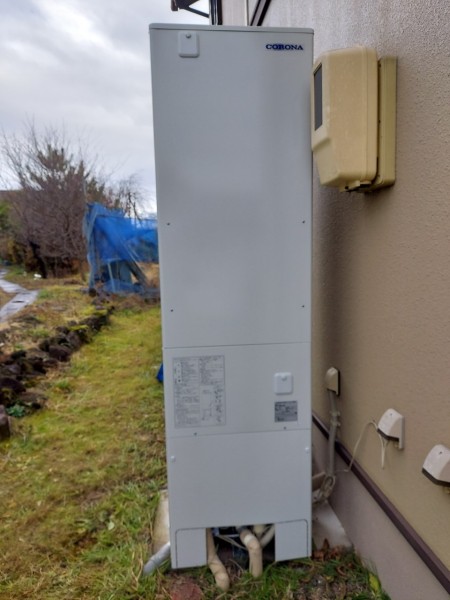 トップページ > 工事事例一覧 > 坂出市瀬居町 コロナ自然冷媒CO2家庭用ヒートポンプ給湯機貯湯ユニットCTU-S46AY5K エコキュート交換工事