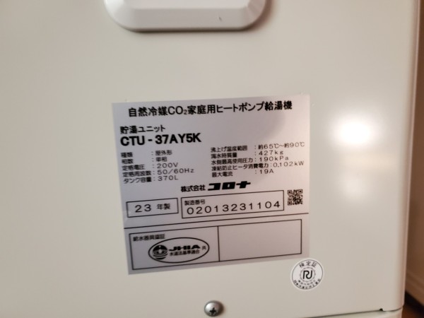 琴平町五條 コロナ自然冷媒CO2家庭用ヒートポンプ給湯機貯湯ユニットCTU-37AY5K、ヒートポンプユニットCHP-Y454K エコキュート交換工事|香川県のエコキュート専門交換工事店|香川エコキュート交換ショップ補助金対応可能