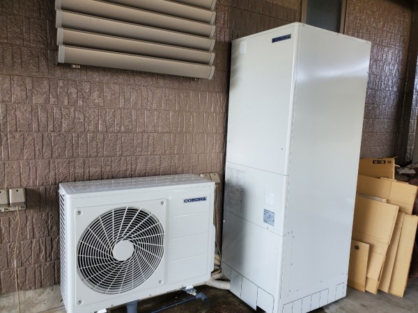さぬき市長尾東 コロナ自然冷媒CO2家庭用ヒートポンプ給湯機ヒートポンプユニットCHP-Y454K エコキュート交換工事