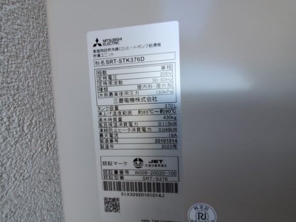 丸亀市今津町 三菱電機自然冷媒CO2家庭用ヒートポンプ給湯機貯湯ユニットSRT-STK376D エコキュート交換工事