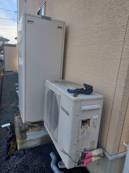 坂出市瀬居町 東芝エコキュート→コロナ自然冷媒CO2家庭用ヒートポンプ給湯機ヒートポンプユニットCHP-Y454K、貯湯ユニットCTU-37AY5K エコキュート交換工事
