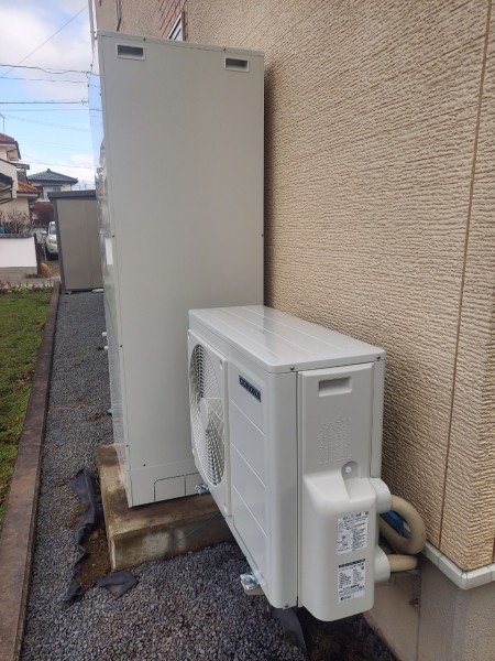 坂出市瀬居町 コロナ自然冷媒CO2家庭用ヒートポンプ給湯機ヒートポンプユニットCHP-Y454K、貯湯ユニットCTU-37AY5K エコキュート交換工事