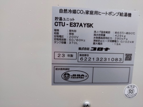 さぬき市長尾東 コロナ自然冷媒CO2家庭用ートポンプ給湯機貯湯ユニットCTU-E37AY5K エコキュート交換工事