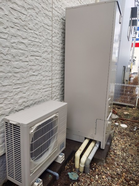 丸亀市今津町 三菱電機自然冷媒CO2家庭用ヒートポンプ給湯機貯湯ユニットSRT-WTK466D、ヒートポンプユニット エコキュート交換工事