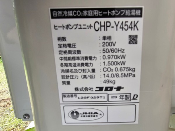 高松市春日町 コロナ自然冷媒CO2家庭用ヒートポンプ給湯機ヒートポンプユニットCHP-Y454K エコキュート交換工事