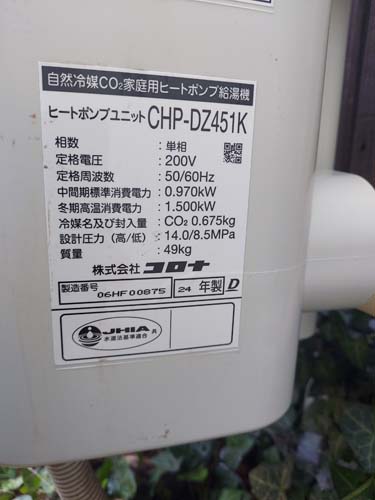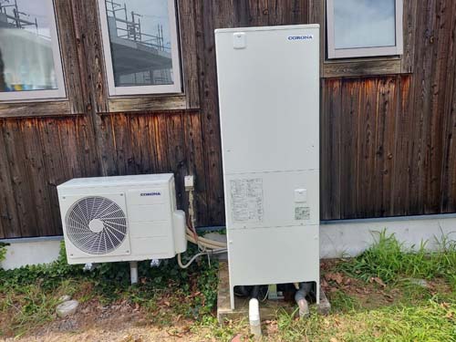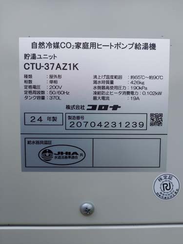 坂出市新浜町 コロナ自然冷媒CO2家庭用ヒートポンプ給湯機 貯湯ユニットCTU-37AZ1K、ヒートポンプユニットCHP-DZ451Kエコキュート交換工事