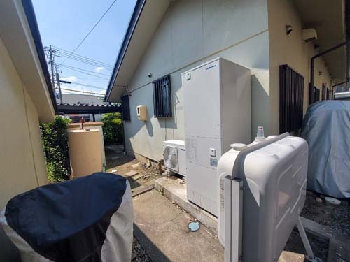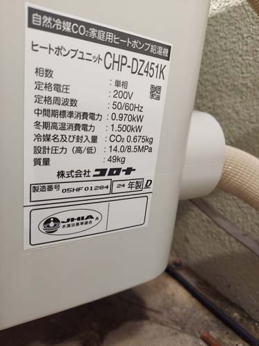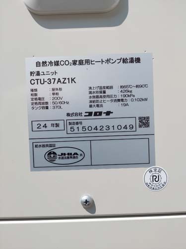 坂出市瀬居町 コロナ自然冷媒CO2家庭用ヒートポンプ給湯機 貯湯ユニットCTU-37AZ1K、ヒートポンプユニットCHP-DZ451K エコキュート交換工事