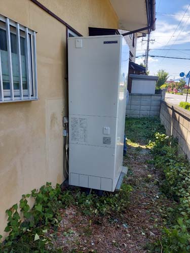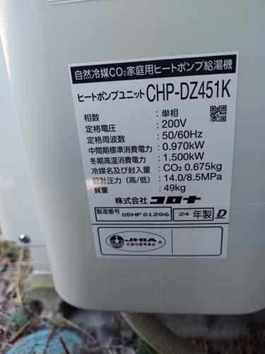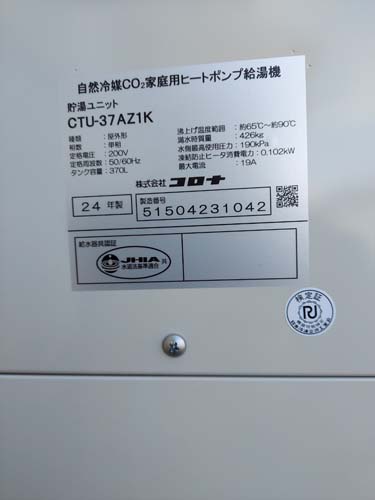 琴平町五條 コロナ自然冷媒CO2家庭用ヒートポンプ給湯機ヒートポンプユニットCTU-37AZ1K、ヒートポンプユニットCHP-DZ451K エコキュート交換工事