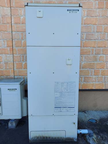 高松市男木町 コロナ自然冷媒CO2家庭用ヒートポンプ給湯機ヒートポンプユニットCHP-DZ601K、貯湯ユニットCTU-46AZ1K エコキュート交換工事