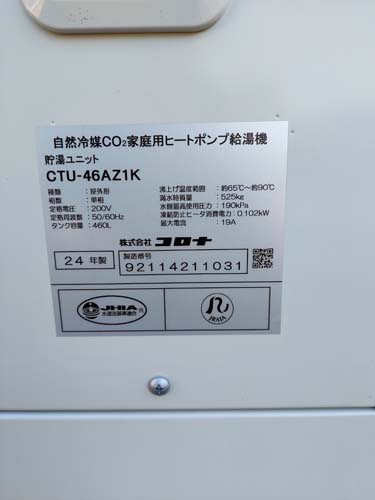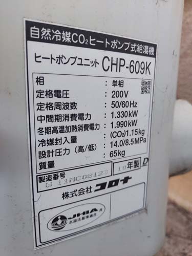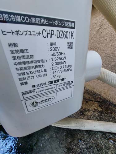 高松市男木町 コロナエコキュートCHP-609K→コロナ自然冷媒CO2家庭用ヒートポンプ給湯機ヒートポンプユニットCHP-DZ601K、貯湯ユニットCTU-46AZ1K エコキュート交換工事