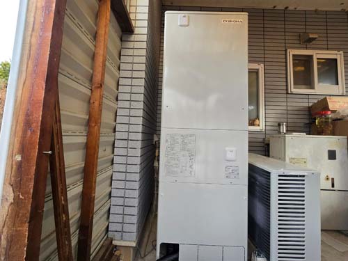 小豆島町坂手 ノーリツ給湯器OTX-3102AY→コロナ自然冷媒CO2家庭用ヒートポンプ給湯機 ヒートポンプユニットCHP-DZ451K エコキュート交換工事