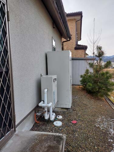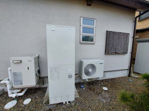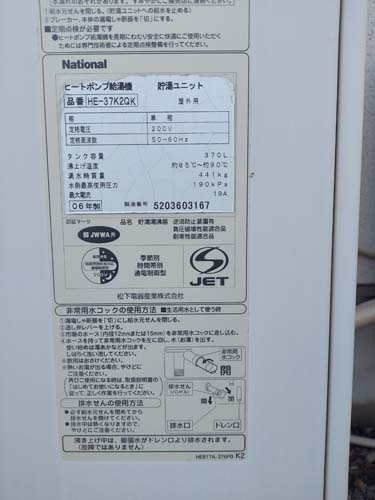 さぬき市志度 Nationalヒートポンプ給湯機貯湯ユニットHE-37K2QK→コロナ自然冷媒CO2家庭用ヒートポンプ給湯機貯湯ユニットCTU-37AZ1K、ヒートポンプユニットCHP-DZ451K エコキュート交換工事