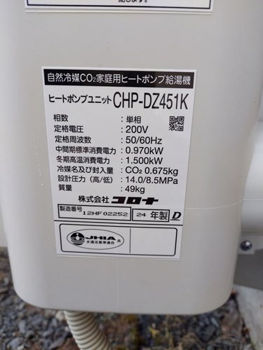 琴平町五條 コロナ自然冷媒CO2家庭用ヒートポンプ給湯機 ヒートポンプユニットCHP-DZ451K エコキュート交換工事|香川県のエコキュート専門交換工事店|香川エコキュート交換ショップ補助金対応可能