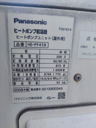 坂出市瀬居町 パナソニックヒートポンプ給湯機 ヒートポンプユニットHE-PF45B→コロナ自然冷媒CO2家庭用ヒートポンプ給湯機 ヒートポンプユニットCHP-DZ451K エコキュート交換工事