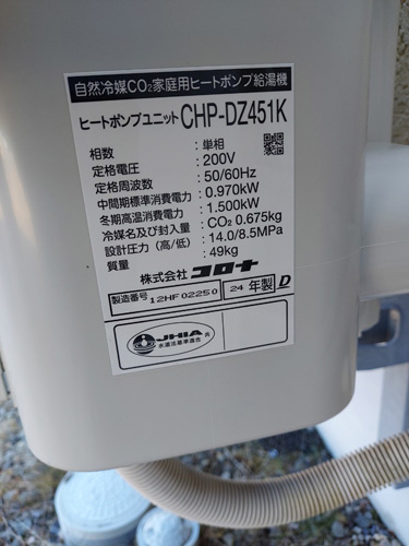 坂出市瀬居町 コロナ自然冷媒CO2家庭用ヒートポンプ給湯機 ヒートポンプユニットCHP-DZ451K エコキュート交換工事