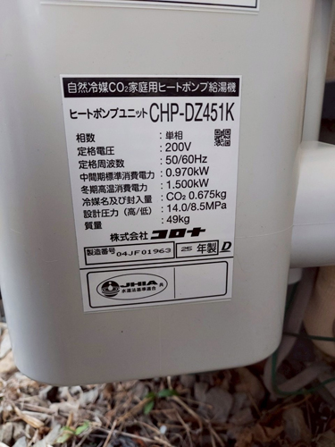 トップページ > 工事事例一覧 > 綾川町千疋 コロナ自然冷媒CO2家庭用ヒートポンプ給湯機貯湯ユニットCTU-37AZ1K、ヒートポンプユニットCHP-DZ451K エコキュート交換工事