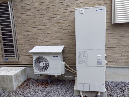 トップページ > 工事事例一覧 > 綾川町山田下 コロナ自然冷媒CO2家庭用ヒートポンプ給湯機貯湯ユニットCTU-37AZ1K、ヒートポンプユニットCHP-DZ451K エコキュート交換工事